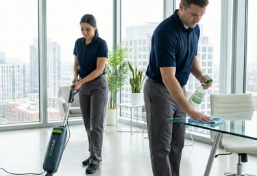 Our mission is to deliver exceptional cleaning solutions that meet and exceed our clients’ expectations. We strive to maintain a safe and healthy environment for businesses and their employees, ensuring that every space we clean reflects the highest quality standards.